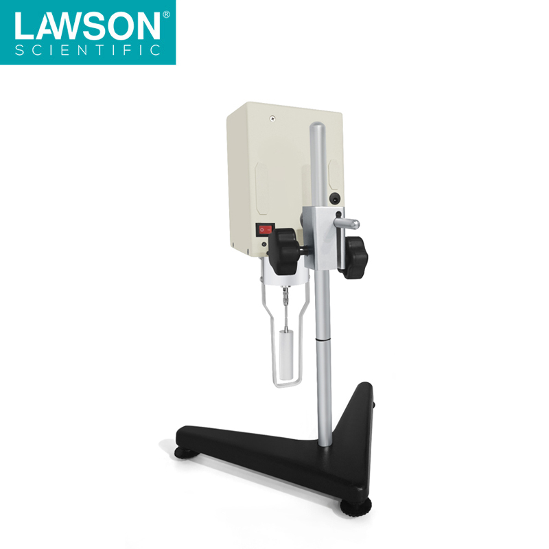 本儀器為指針粘度計,由電機經變速帶動轉子作恒速旋轉。當轉子在液體中旋轉時,液體會產生作用在轉子上的粘度越大,該粘性力矩也越大;反之,液體的粘度越小,該粘性力矩也越小.該作用在轉子上的粘性力矩由傳感器檢測出來,經計算機處理后得出被測液體的粘度。