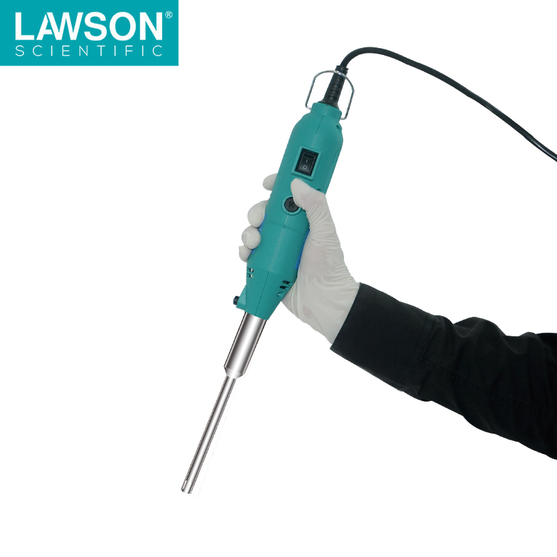 DH-S10型手持式高速勻漿機(別名:電動組織勻漿機)適合于液體相互混合、乳化、均質(zhì),固體粉末在液體中的分散,動物組織的搗碎、勻漿。本機通過高速剪切、分散,產(chǎn)生強大的液力剪切效應(yīng),使物料從轉(zhuǎn)子下端吸入,通過定子噴射,造型符合人體工程學,適合手持操作,可隨意移動。最小處理量可至0.2ml,專為組織搗碎、醫(yī)學診斷、質(zhì)監(jiān)檢測、微量分散、乳化、均質(zhì)而開發(fā)的勻漿機,是微量樣品前處理的理想設(shè)備。